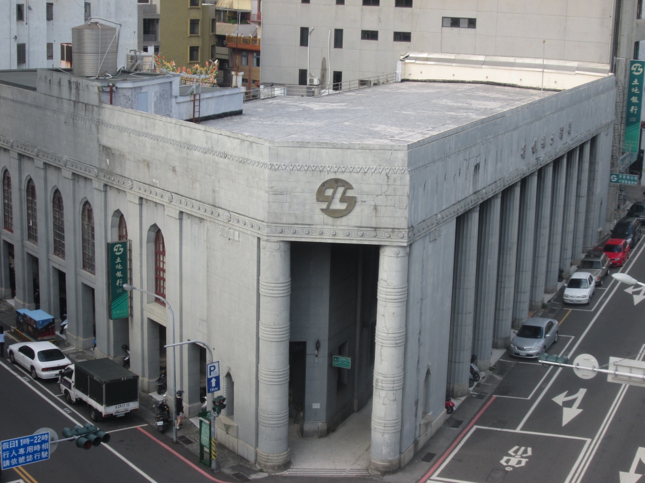 台南市街の中正路と忠義路二段の角、人気観光スポットの林百貨の斜め前にあります、1937年に造られたかつての日本勧業銀行台南支店、中華民国時代から土地銀行となり現在も銀行の支店として利用されています、重厚な柱が並ぶ外観が見所です。
