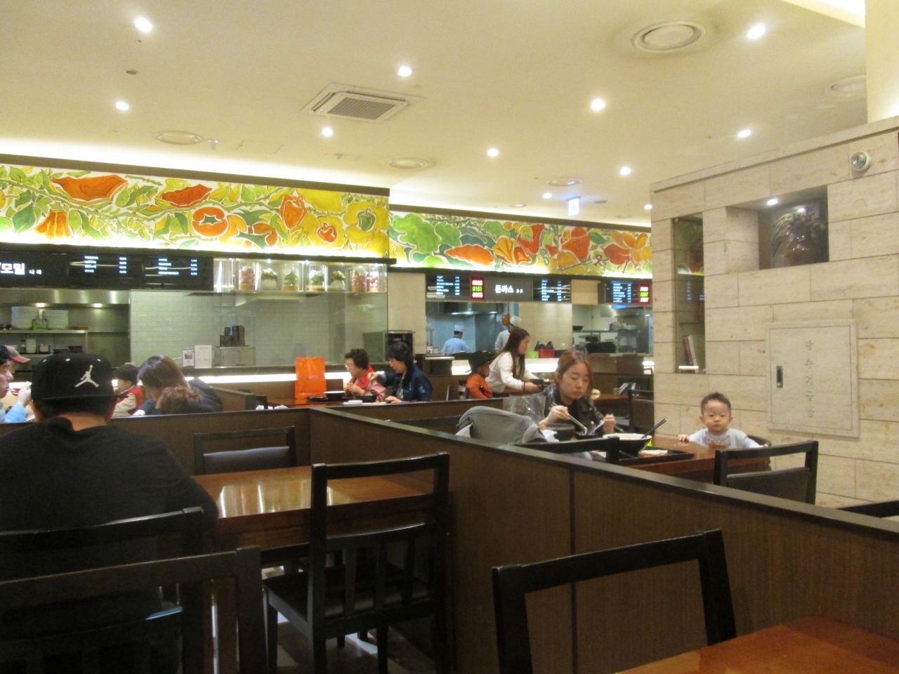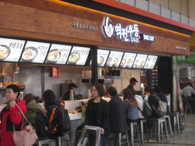 高速バス利用でソウル高速バスターミナルに到着、地下鉄に乗る前に時間があったのでフードコートで食事をしました、地下鉄とバスターミナルに隣接しているので便利です、地下食品売り場には日本でおなじみのお店が1階の化粧品売り場にも日本のメーカーが出店していました、フードコートではチケット売り場で食券を買うとブザーでできた時知らせてくれました、できる場所はスタッフに聞きました。
