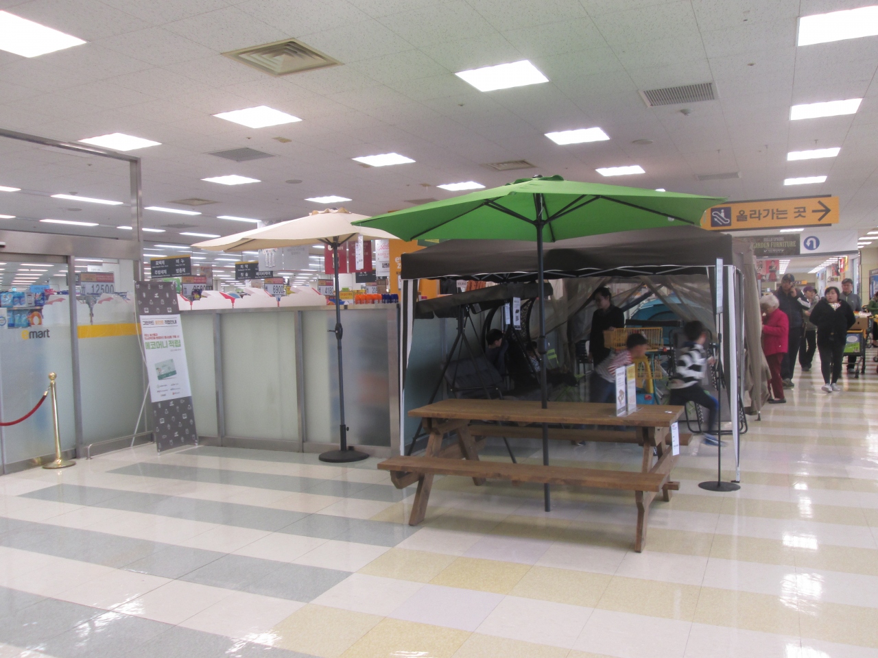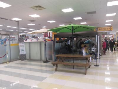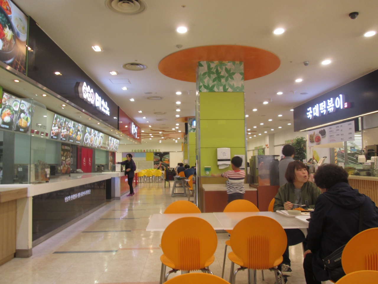韓国内にチェーン展開する量販店Eマートの束草店、市街地南部の高速バスターミナルから近い場所にあります、2階建てののショピングセンターです、1階の食品売り場とフードコートを利用しました、フードコートではチケット売り場を利用して食券を買ってブザーを受け取り、鳴ったらそれぞれのカウンターで受け取ります。