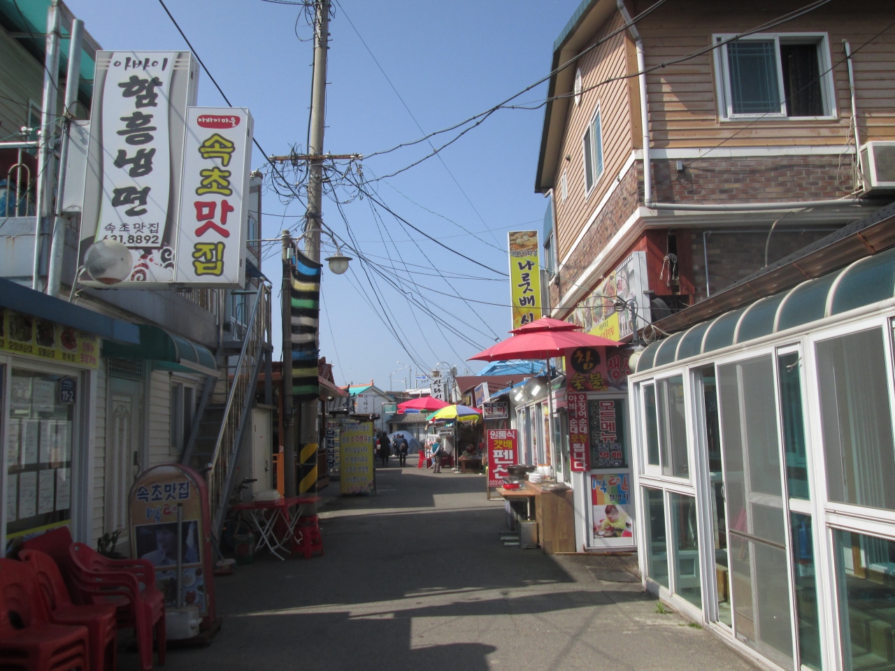 市街地の南には長距離高速バスターミナルがありますが、北には中距離バスの市外バスターミナルがあります、江陵、春川などへ行けます、市外バスターミナル前からは各市街地への路線バスも出ています、ターミナルのそばには飲食店が何軒もあります