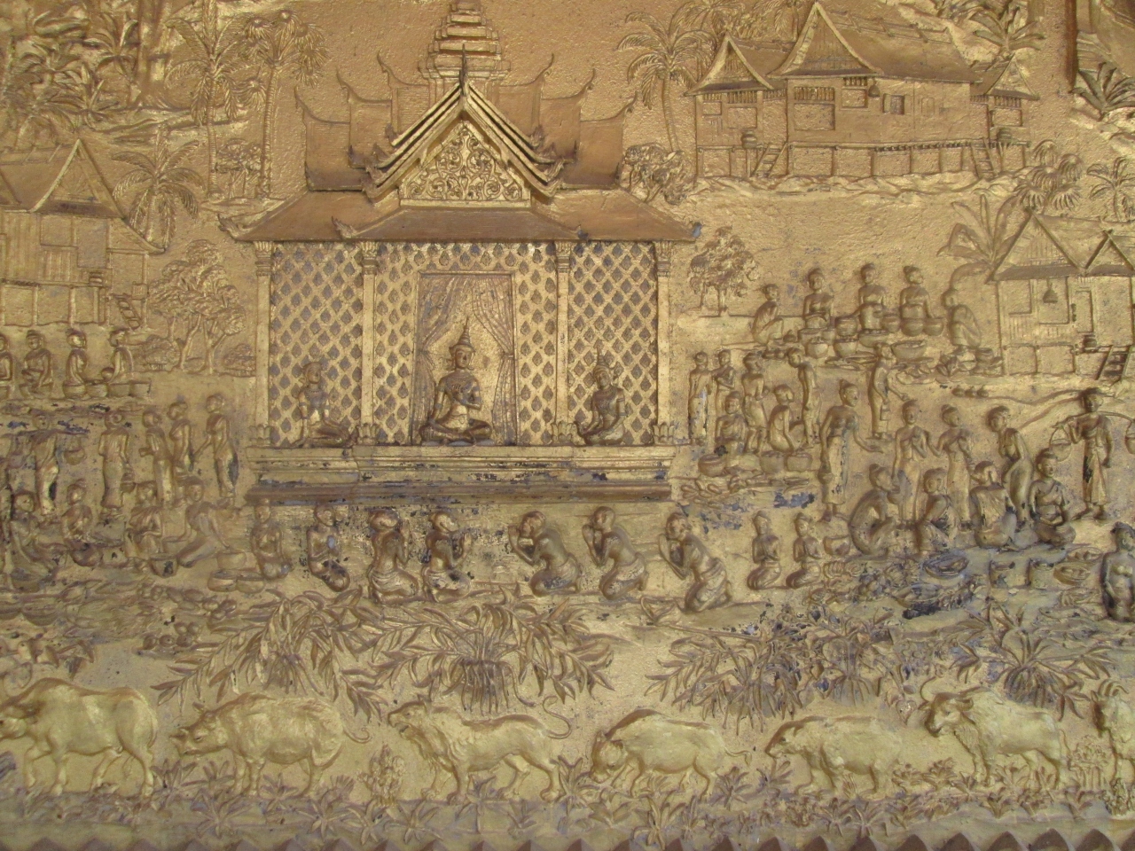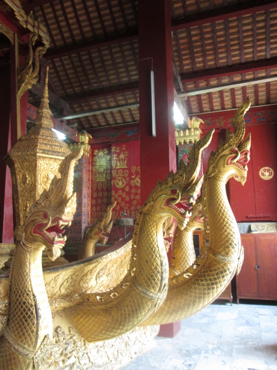 ルアンパバーン市街の北東のはずれ、メコン川とサッカリン通りの間にある大きな寺院です、本堂はルアンパバーン様式の建物、本堂内には多くの仏像が安置されています、境内には赤堂、立像堂、シーサワンウォン王の葬儀で使用した霊柩車が収められている霊柩車子などがありルアンパバーンを代表する寺院で多くの参拝者・観光客が来ています。