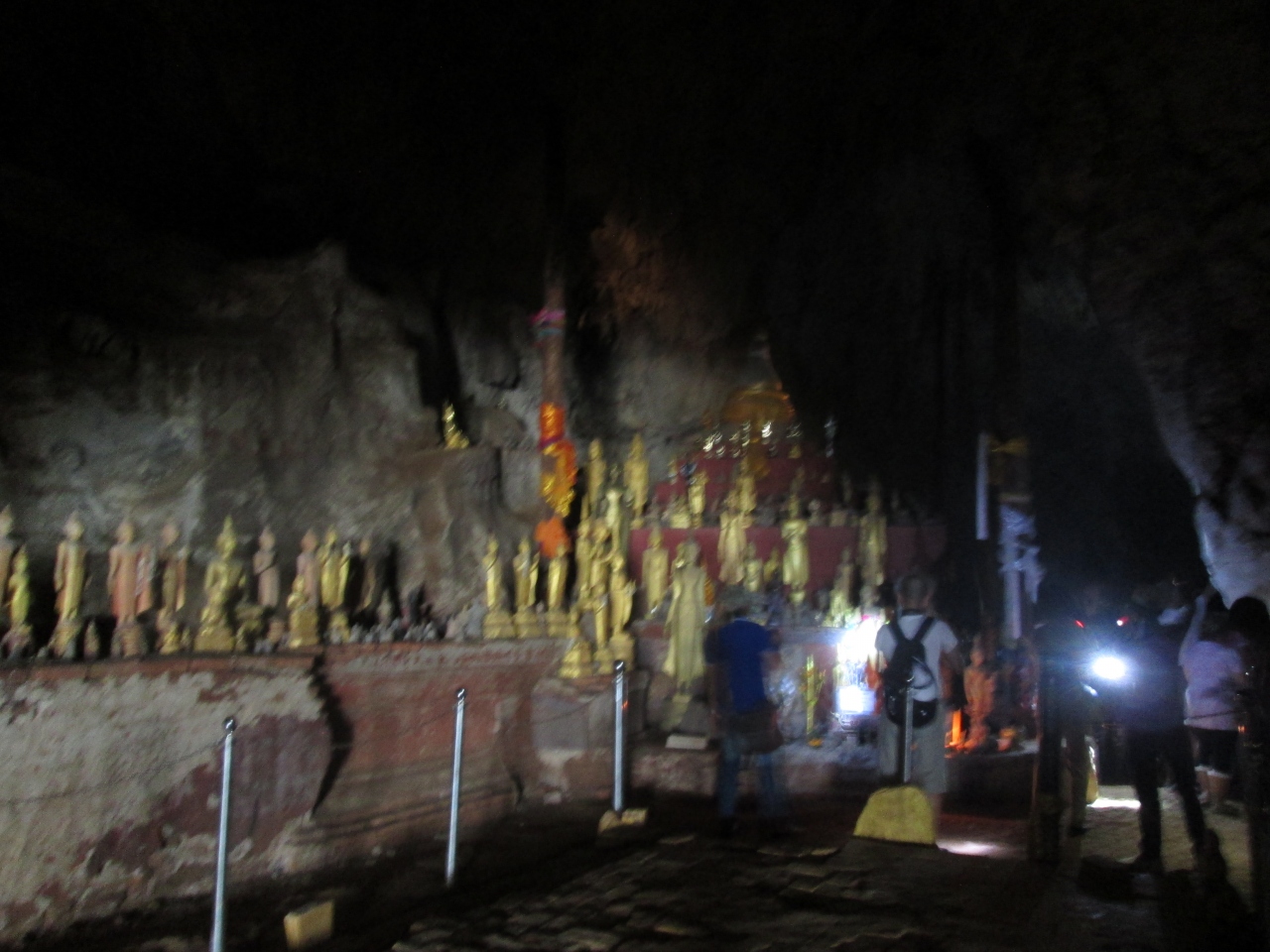 メコン川クルーズで行きました、ラオスの焼酎を作っているバーンサーンハイからボートに乗船して洞窟下の船着き場まで行き、階段を上って最初の洞窟(タム・ティン・ルム)へ、多数の大小の仏像が洞窟内ありました、日本にある五百羅漢とはちょっと違った情景を見ることができました、そこからさらに遊歩道を歩くと次の洞窟(タム・ティン・トゥン)がありました、ここにも仏像が多く安置されていました、暗い中を歩くことになりました、ライトがあればと思いました。
