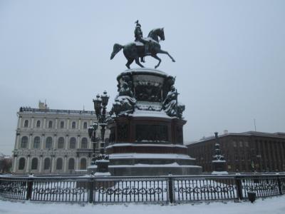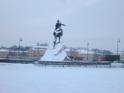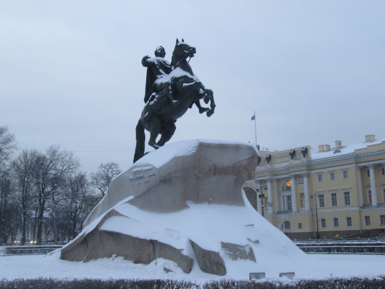 大ネヴァ川沿い聖イサク聖堂の北側にあるデカブリスト広場の中央にある騎士像です、1782年にペテルブルクで最初にできた彫刻家ファルネコが制作した騎士像で町のシンボルの一つでもあり、観光客が必ず訪れる記念撮影に最適な場所でもあります