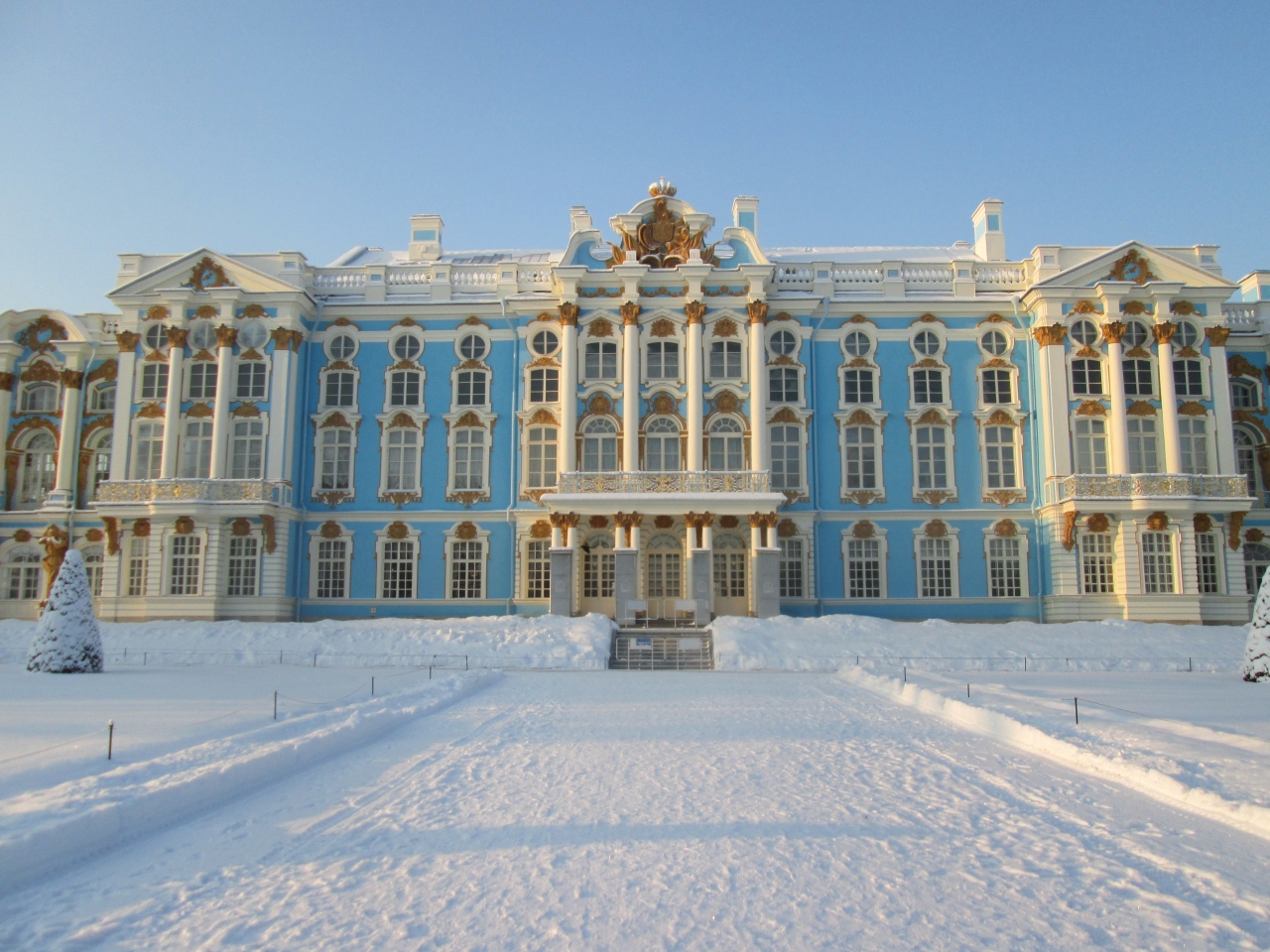 サンクトペテルブルク郊外、南約25kmにある皇族の夏の住まいとして利用されてきた宮殿、冬でしたので周囲が雪の冬景色の中にある宮殿でした、この宮殿で人気がある琥珀の間、写真を撮ることができない分インテリアなど目に焼き付けてきました、他に絵画の間、王座の間など見てきました。