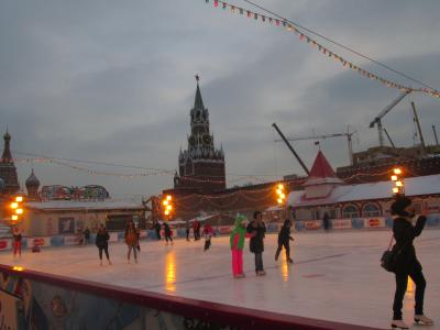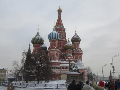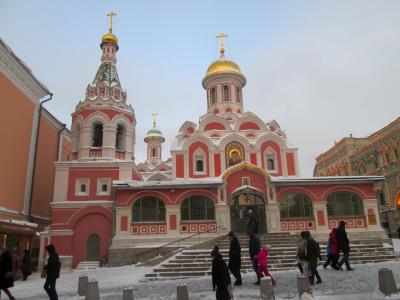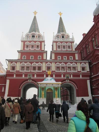 グム百貨店などがある赤の広場入口にあるのがヴァスクレセンスキー門で、おとぎの国のお城のような建物です、アーチの上に2つの塔があります、現在の門は1995年に再建されたものです、バックに記念撮影をする観光客が多いです。