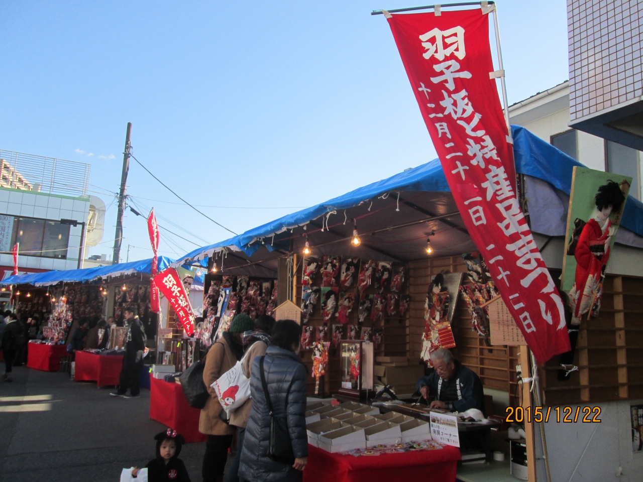 毎年12月の下旬に行われている催しです、東武スカイツリーライン・アーバンパークラインの春日部駅東口駅前で春日部特産の押絵羽子板中心に仮設テントを利用して販売されています、浅草羽子板市のミニ版のようなもので、羽子板の他、春日部特産の桐製品や麦わら帽子なども販売されています。