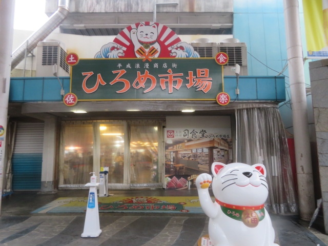 はりまや橋から帯屋町商店街・アーケード街を歩いてアーケードが終わった場所にありました、市場内に15時頃入りました、多くの人が飲食をしていました、とても活気があり、いい雰囲気で吞んでいる人多くいました、売り場では海産物他、お土産類の販売もありました、ここでは飲食はしないでつまみ類の買物しました、大衆料金のお店が多いようで行き易いです。