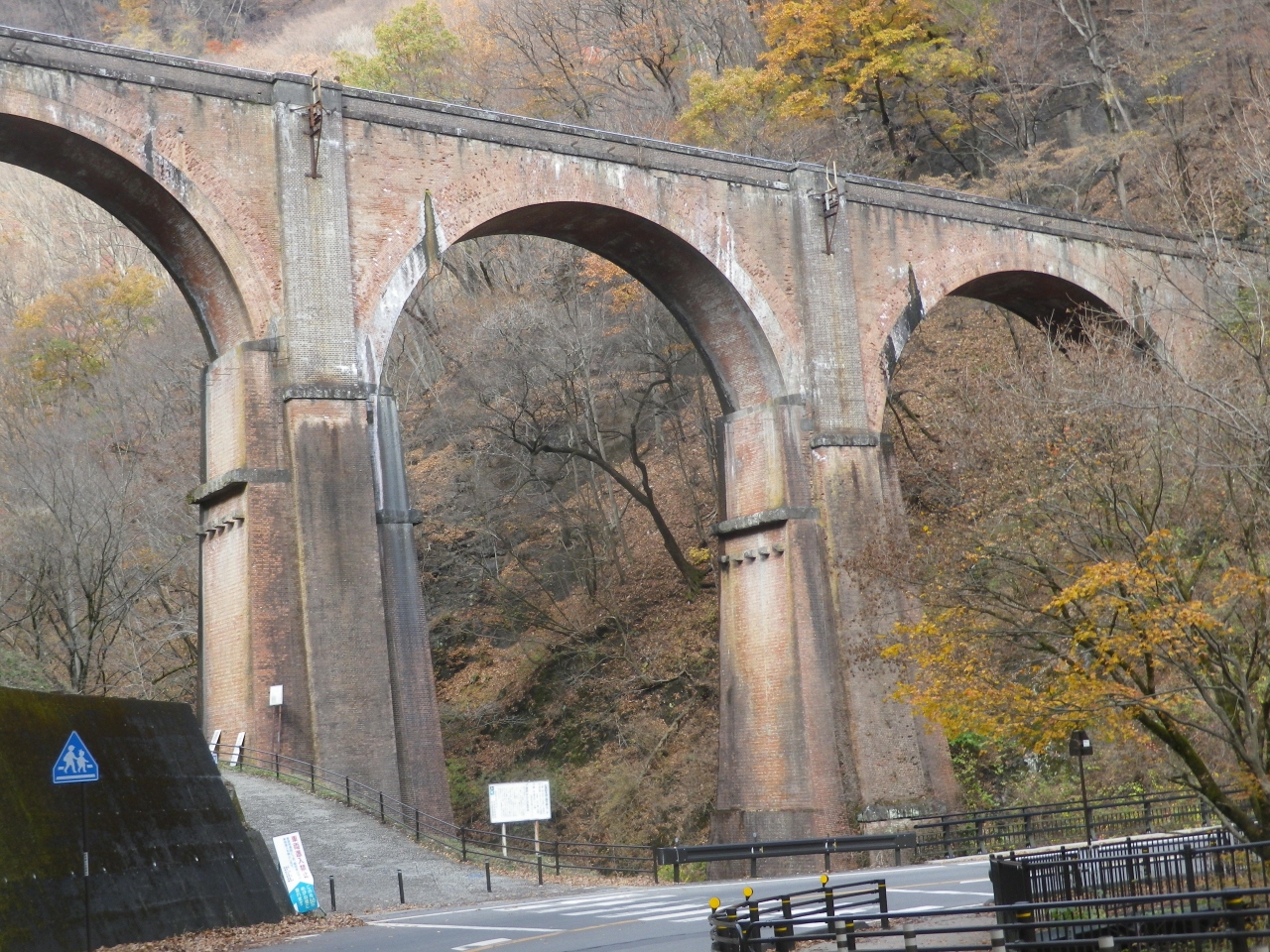 正式名称は碓氷第三橋梁で通称めがね橋です、明治26年(1893年)に出来て昭和38年の廃線になるまで利用されていました、煉瓦アーチ橋で長さ91m、高さ31mで現在は遊歩道アプトの道として歩くことが出来、橋の下を通る旧18号国道に駐車場があり、そこから行けます。