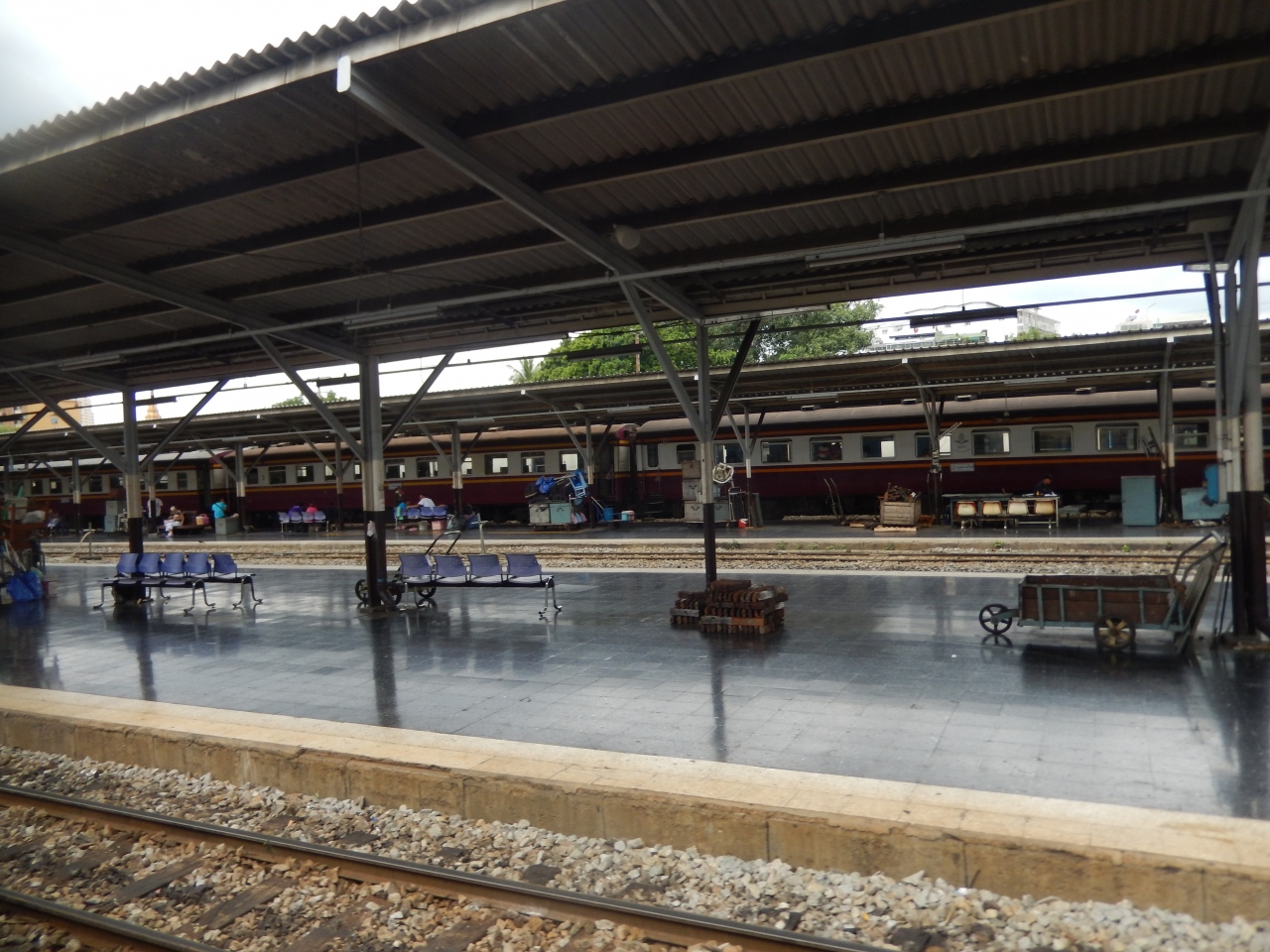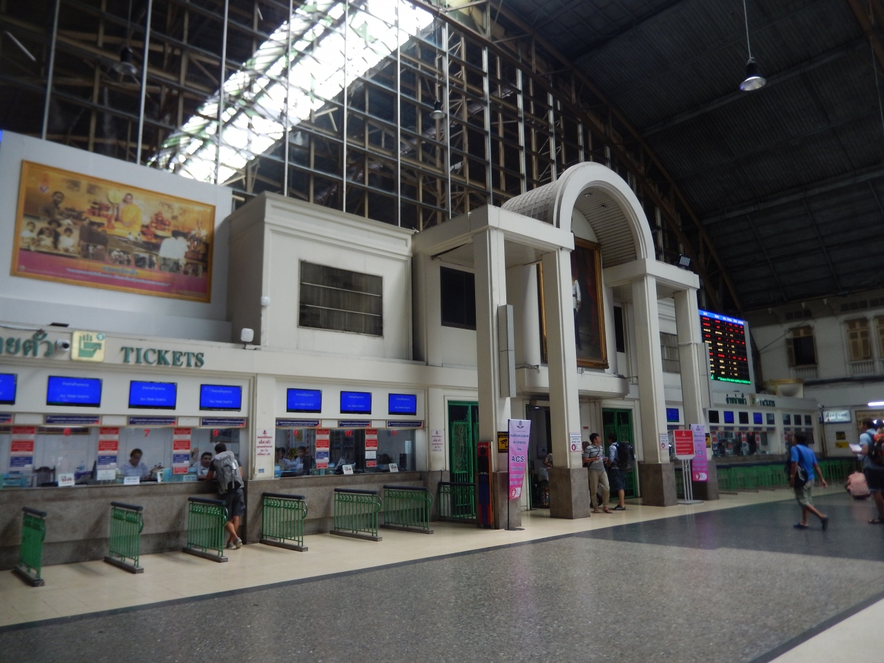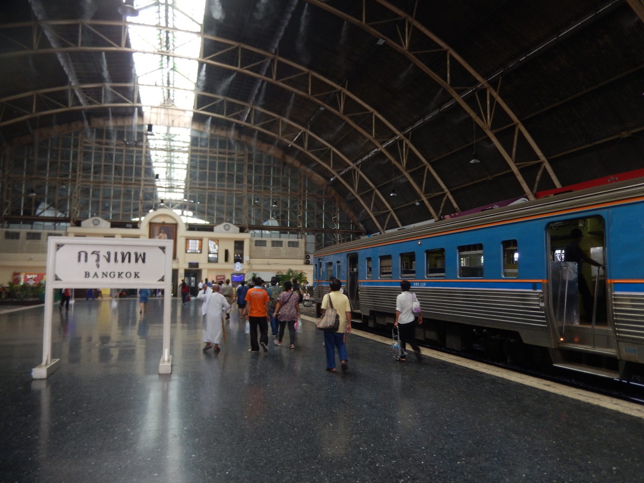 タイの国鉄利用で、ドーン・ムアンからとバーンケーンから利用して終着駅のファランポーン(クルンテープ)駅に到着して利用しました、MRTの駅は3度ほど利用しました、国鉄の駅は日本の体育館を大きくしたような駅舎で駅構内はとても広く、インホメーションやフードコート・売店等があり便利です、近くのアユタヤや遠くのチェンマイなどここからが始発の列車に乗車することが出来ます。
