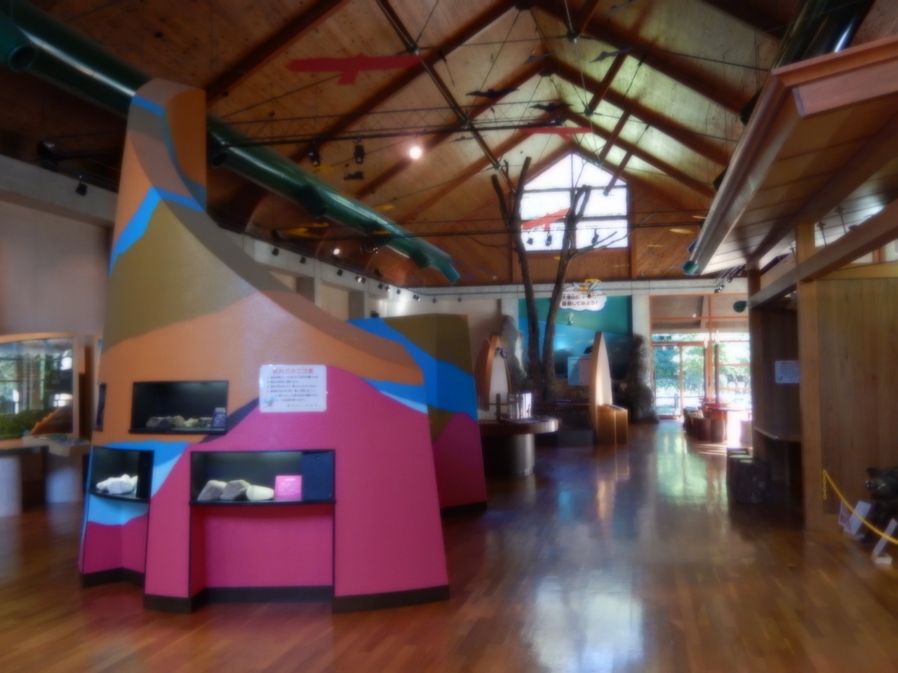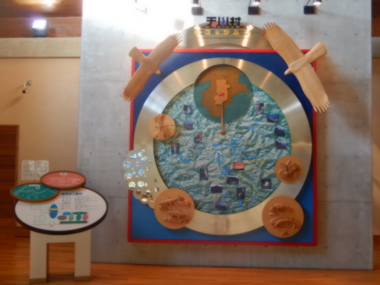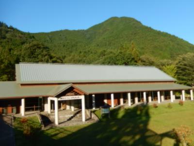 洞川温泉街のはずれにあります、行者の道から山上川に架かる橋を渡ると平屋の大きなエコミュージアムセンターがあります、「自然」・「水」・「修験道」をテーマに大峯山系の自然や生活環境をそのまま生かした博物館です、パネルや展示物で紹介されています、温泉街中心から離れているので入館者は少ないようです、入館は無料で10時から17時まで開館、水曜日は休館です。