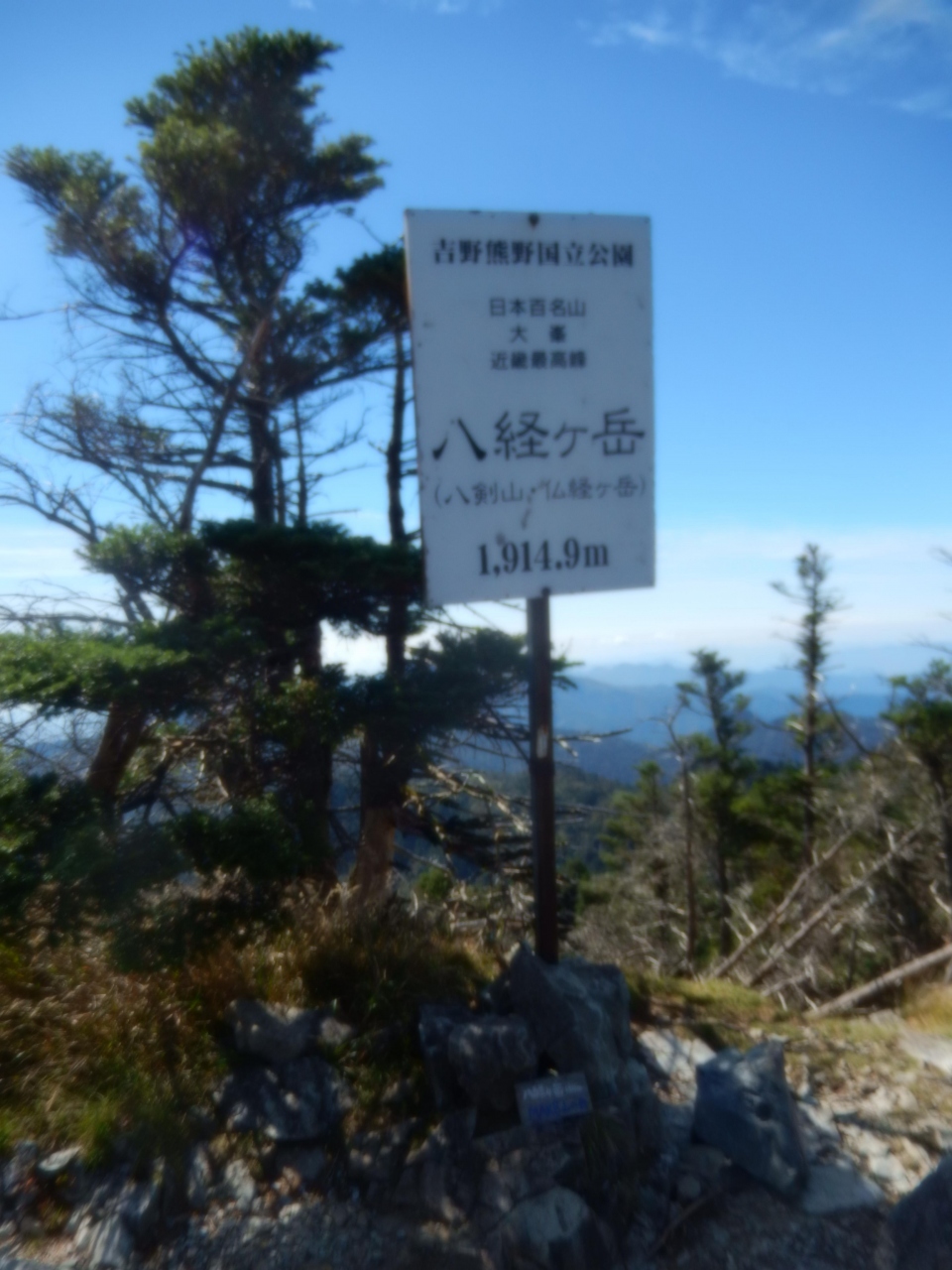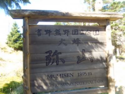大峰山脈の最高峰八経ヶ岳から30分程の場所にある山です、山頂(1895m)には天河弁財天の奥宮があり、麓にほ弥山小屋もあります、頂上付近からの眺めは素晴らしいです、周辺ではオオヤマレンゲなどを見ることが出来ます、世界遺産の区域にあり多くの登山者が登っていました。