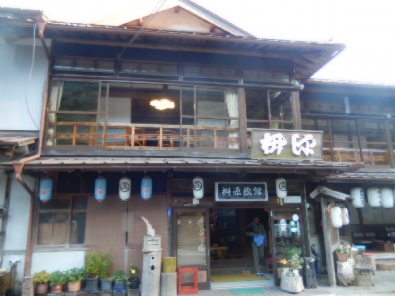 天川村を代表する温泉地で、温泉街の街並みは大正・昭和初期を思い出させる木造の旅館が今も残っていて散策が楽しくなりました、温泉街には旅館、飲食店、お土産屋が並び、修験者の秘薬とされた和漢薬の陀羅尼助を売るお店が多くあります、標高が600mあり、夏はちょっと涼しく冬は雪が降ることが多いようです、温泉街入口には日帰りの入浴が出来る温泉センターがあります。