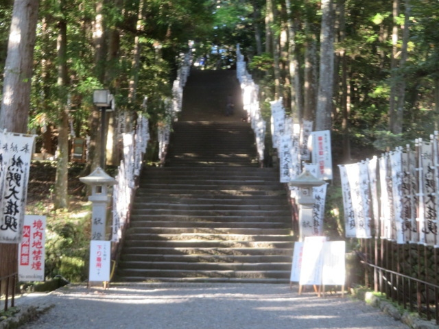 世界遺産熊野三山のひとつです、熊野古道の中辺路ルート上の発心門王子を散策してから行きました、熊野古道を歩く人達が多く参拝するようです、発心門王子からですと裏門から入るようになるので表門に移動して参道、158段の石段を歩いて総門をくぐって社殿に行きました、杉木立に囲まれていて古式ゆかしい雰囲気です、創建から2千年以上たつのでその歴史を感じながら参拝・散策をしました。