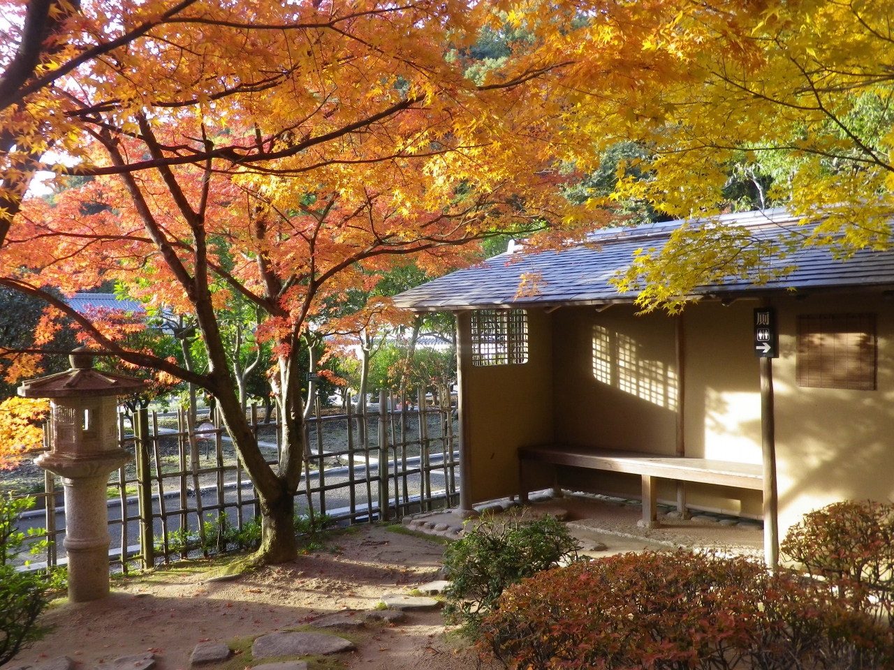 松山藩主の邸宅跡を復元した庭園、松山城二之丸跡の敷地を史跡庭園として整備、平成4年5月に開園、園内に大井戸遺構、林泉庭、表御殿跡、奥御殿跡流水園、柑橘・草花園等があり、有料施設として、観恒亭・聚楽亭・勝山亭があります、又、展示室と休憩所もあります、私が行った11月下旬の紅葉が良かったです。