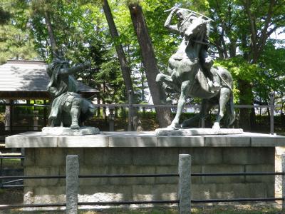 長野ICに近い千曲川沿いにある大きな公園で、川中島古戦場を利用していて、公園内には八幡社や長野市立博物館があります、又、園内には芝生広場、小川のせせらぎ、茅葺屋根の東屋などもあり、お土産屋やそば処もあります、大きな無料駐車場がありますの気楽に寄れます、八幡社横にある信玄と謙信の一騎討像が有名です