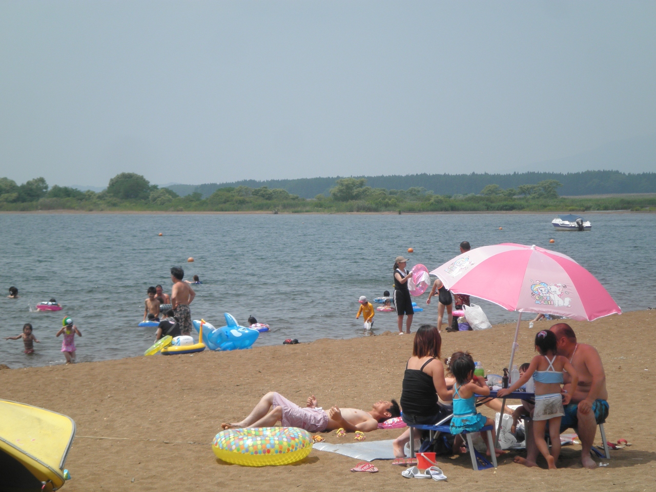 猪苗代湖畔の志田浜でには、湖水浴を楽しむ人達で賑わっています、志田浜には、多くの食事何処があり、