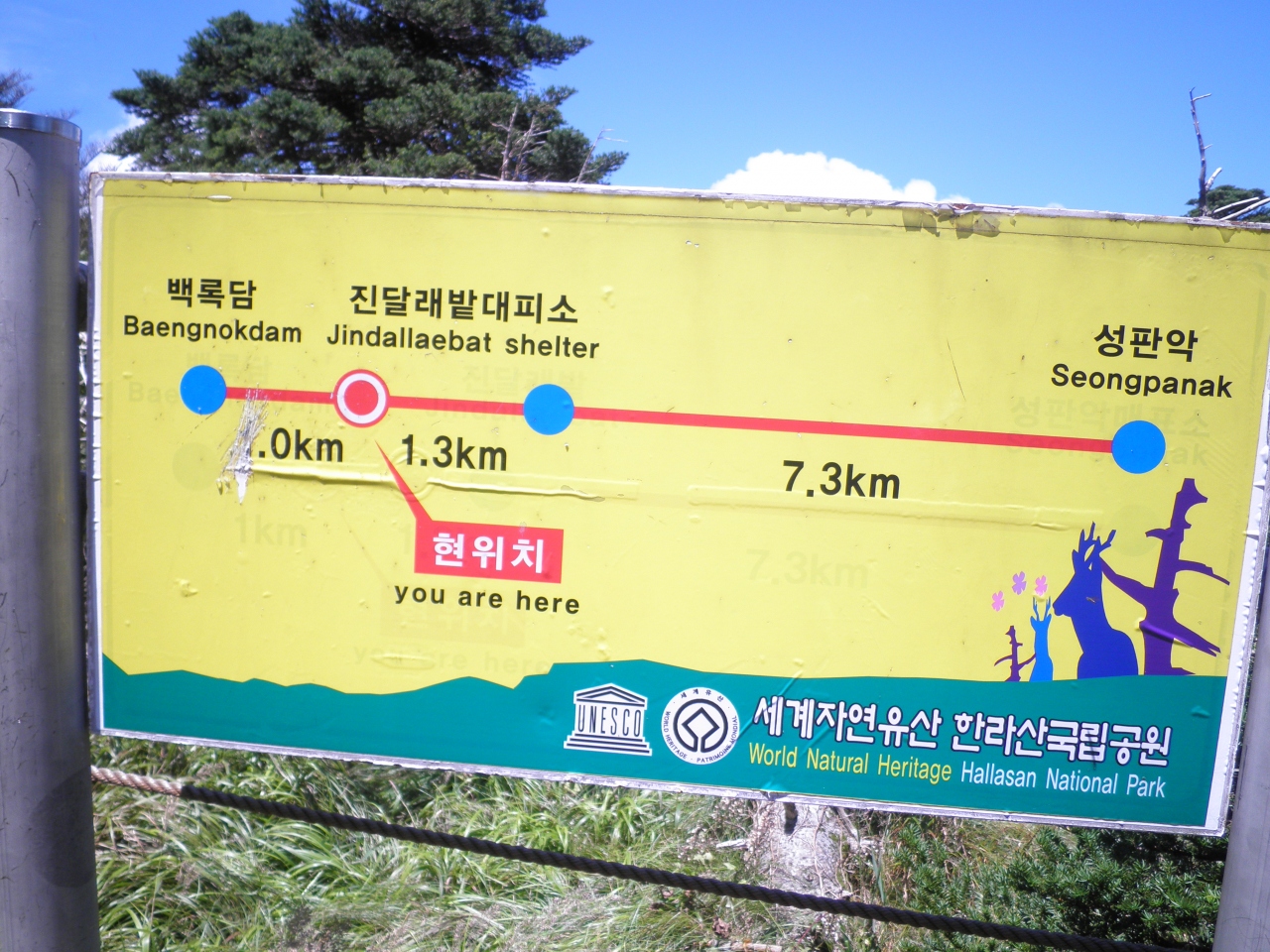 韓国で最高峰の山である、漢拏山(1950m)は登山道(城板岳コース・観音寺コース)に案内板が