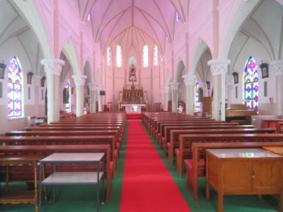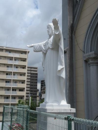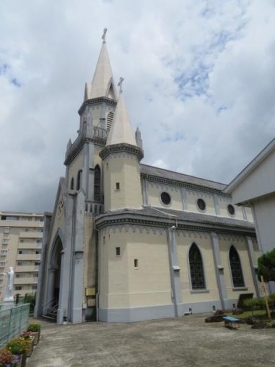 佐世保駅から5分位で行ける駅に最も近い教会です、駅前から国道35号線を歩くとすぐあります、階段を登ると建物に出ます、高台にあるので佐世保駅方面の眺めを楽しむこともできます、明治32年(1899年)に設立、現在の建物は昭和6年(1931年)に完成、ゴシック建築の建物を見ているとヨーロッパを思いだします、教会内には入れなかったが外から建物をたっぷり眺めました。