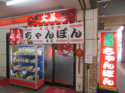 佐世保駅から1分の便利な場所・高架下食堂街にあります、隣接して香蘭があり、どちらにしようか考えました、席が空いていたので大善に入りました、全席、カウター席なので一人でも気軽に入れました、ちゃんぽん、皿うどんが主です、ちゃんぽん(750円)を食べました、エビ、イカ、ちくわ、きゃべつ、もやし、にんじんなど入っていて美味しかったです。