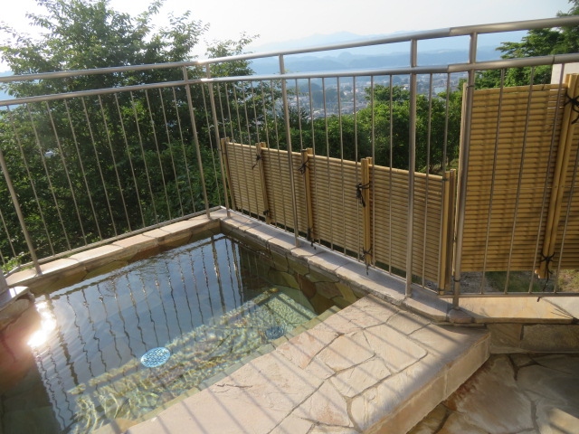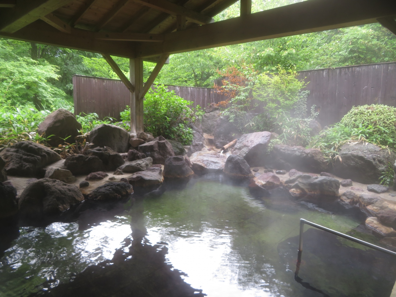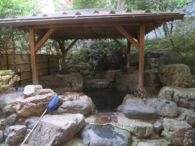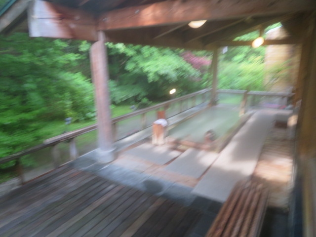 お風呂は露天と大浴場があり、大仙湯と韮山湯の2本の源泉から引いてました、温いのでたっぷり入りました、多くの人が時間をかけて入っていました。