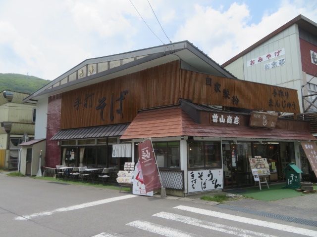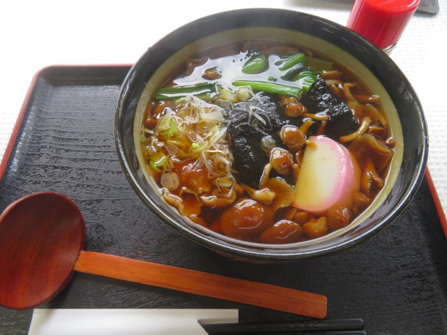 赤城山大洞、大沼に近いおのこ駐車場前ボート乗り場入口角にあるうどん・そばにワカサギのフライが美味しい曽山商店で食事をしました、丁度行った6月に周辺の食事処でワンコインサービスをしていました、曾山商店ではなめこうどんが500円でしたので食べました、たっぷりの入ったなめこと美味しいうどんでした。