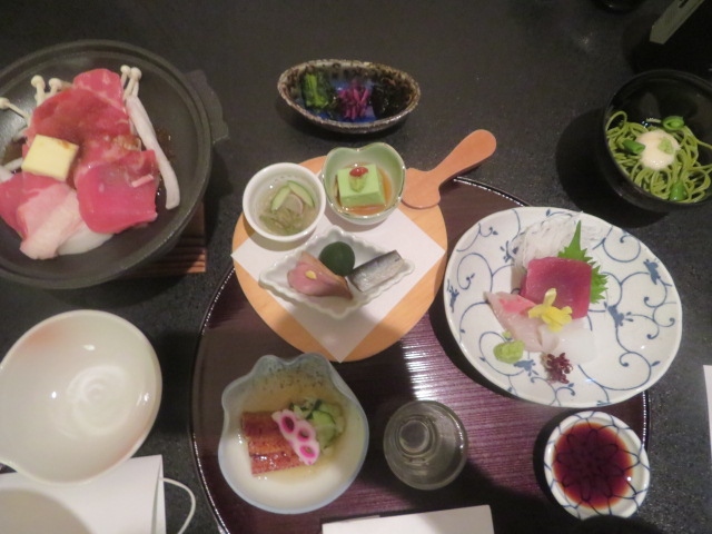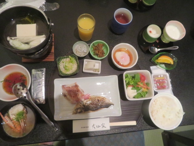 伊豆畑毛温泉で最も大きな宿です、一緒に行った人の希望で大仙家に宿泊しました、温泉と食事を楽しみました、部屋は和室の眺めがいい部屋でした、食事は夕食・朝食とも食事処の遊山でした、夕食は夏の撫子会席で朝食は普通の和定食でした。