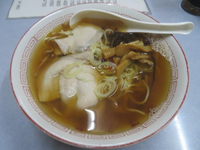 JR大村駅の前の通りを挟んだ前にある食堂です、電車に乗るまで1時間位あったので入りました、歴史がありそうなお店で、誰もいなく一人でした、長崎らしく看板に表示されていてチャンポン・皿うどんがメインのようです、チャンポンは後で食べようと思ったのでラーメン(650円)を食べました、チャーシューが2枚入っていて、普通の味でした。