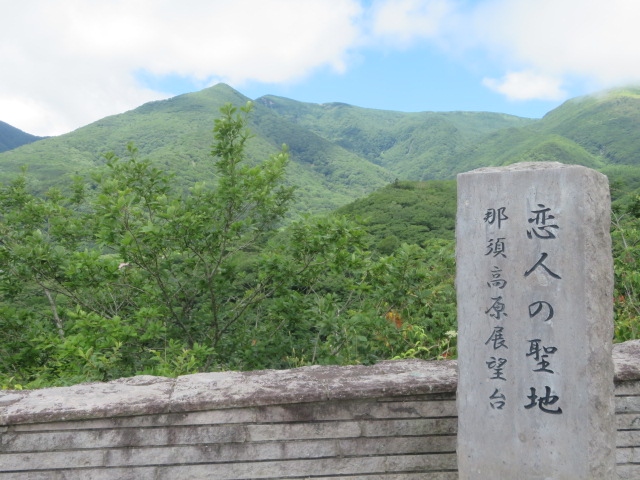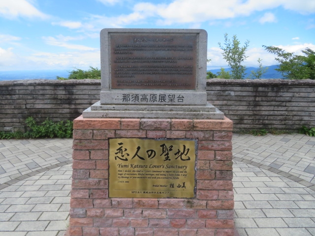 那須湯本温泉から那須ロープウエイ・峠の茶屋方面に向かう途中、県道17号線(那須高原線)沿いにあります、10台位停められる標高1048mに駐車場があります、全国にある恋人の聖地の一つです、ここから那須野が原が良く見えます、遠くには筑波山も見えます、ドライブの途中で寄って眺望を楽しみました。