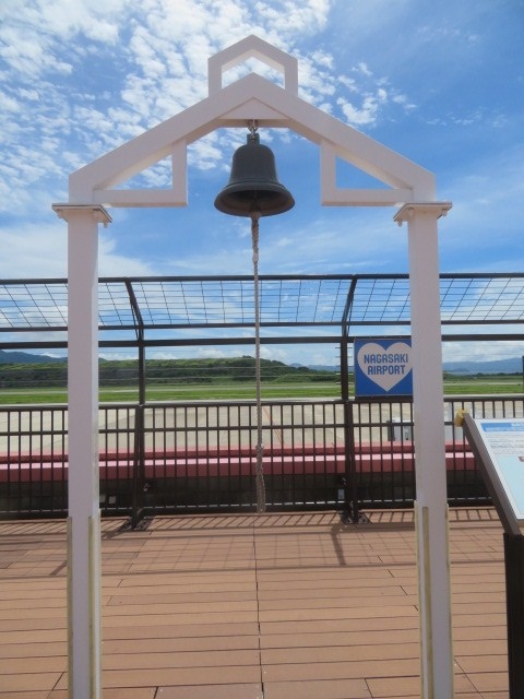 長崎空港3階の屋上にあります、時間があったので行きました、無料で入れます、人が少なく静かでした、長崎らしく幸せの鐘があります、子供用にきっずらんどがあります、芝生スペースもあります、駐機している航空機は少なかったです、離島に行く小型機が何機かありました、反対側を見ると大村湾・大村市街が見えました。
