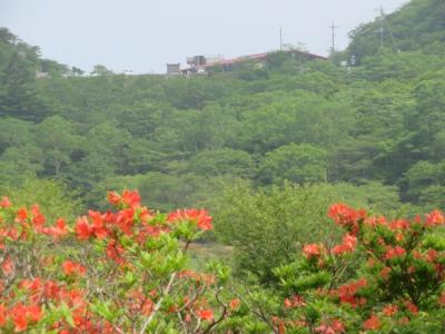 赤城山にある観光スポットです、県道70号線・大間々上白井線、県道16号線大胡赤城線の終点で大きな駐車場があります、標高は1390mあり、夏でも涼しいです、旧ケーブルカーの駅建物があり、食事・買物が出来ます、ここから眺望がいいです、眼下に覚満淵や大沼が見えます、ちょっとだけ散策しました、丁度アカヤシオが咲いていました。