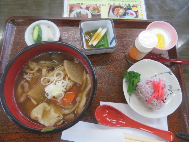 那須街道広谷地交差点近くにある道の駅那須高原友愛の森の中にあるレストランです、お土産屋が買えるふるさと物産センター隣に建物があります、周辺の食材を利用した料理がメインです、ステーキ丼、コロッケ定食、九尾定食などあります、食べたのは周辺でも食べられる、な・すいとん定食(900円)です、1日10食限定です、久し振りにすいとんを食べることができました、美味しかったです。