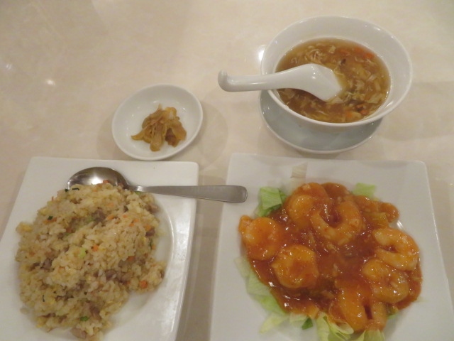 横浜中華街の中央付近、市場通り沿いにある広東料理の食堂です、1992年に創業しています、本格的な広東料理、自家製点心が食べられます、夜に行きましたが空いていたので一人で入りました、エビチリソース定食(990円)を食べました、チャーハンとエビチリソースがセットになっていてお得、小籠包・ザーサイ・スープがついていました、デザートは出ませんでした、麻婆豆腐のセットも同じ値段でした。