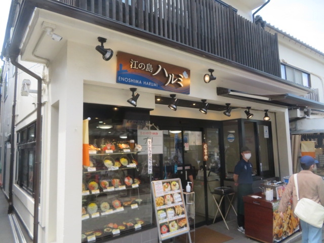 江の島名物の生しらす丼(1100円)を食べました、江島神社の参道・弁財天仲見世通り沿いにある昭和2年創業の老舗食堂江の島ハルミで食べました、丁度空いている席があったので一人でも大丈夫でした、目的の生しらす丼を美味しく食べることができました、他にここが発祥の江の島丼(1400円)などしらすを利用した丼があります、加工品のお土産の販売もしています。