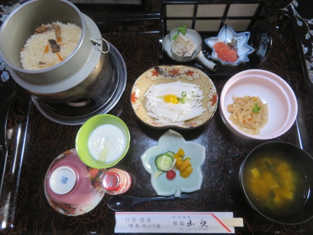 食事は夕食・朝食とも部屋食で落ち着いてゆっくり食べることができました、内容も良かったです、朝は釜飯でした。- 旅行時期