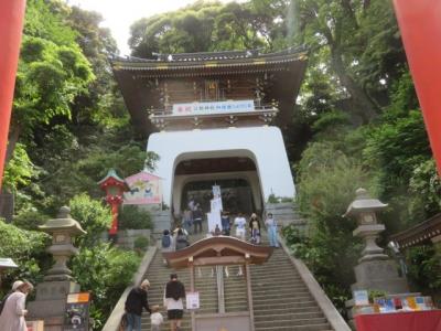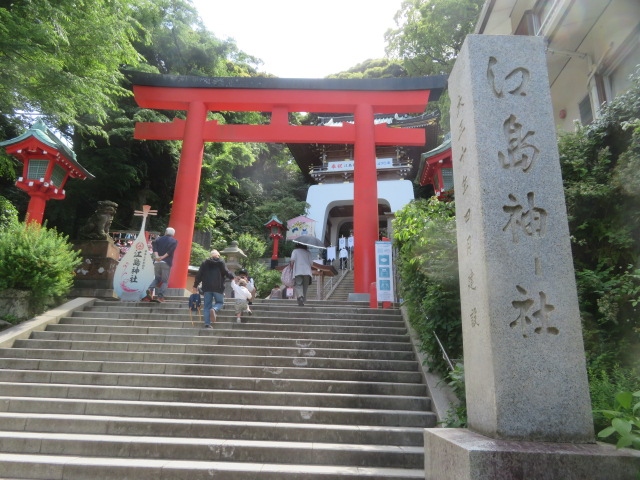 江の島の中にある神社です、三つの宮、辺津宮・中津宮・奥津宮を総称して江島神社と呼んでいます、そらぞれの宮には海の守護神である女神が祀れれています、江の島弁天橋を渡り弁財天仲見世通りを行くと最初にあるのが辺津宮で、現在の社殿は昭和51年(1976年)に改修されています、辺津宮の上には中津宮があり、仁寿3年(853年)慈覚大師によって創建されています、現在の権現造の社殿は元禄2年(1689年)に再建されてます、平成8年(1996年)には大改修が行われました、奥津宮は島の奥にあります、三つの宮を周ると結構時間を要します、階段や坂を登るので体力もいります、私はゆっくり時間をかけて周りました。