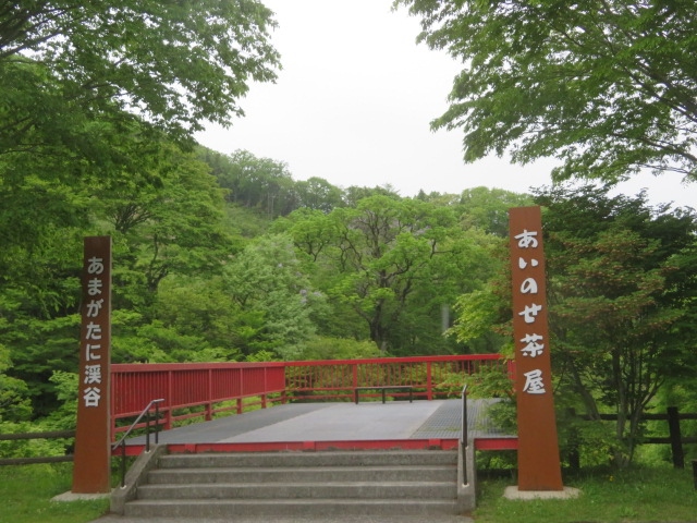 九重町・飯田高原の山の中にあります、古民家風の大きな建物です、色彩ロード沿いにあり食事で寄りました、食事とお土産の買物が出来ます、駐車場に隣接して展望所があり、あまがたに渓谷の景色を見ることができます、秋の紅葉は良さそうです、食堂ではうどん・そば中心にあり、名水コーヒー(400円)を飲むこともできます、名物のあいのせうどん・そば(950円)には地鶏・山菜・ごぼ天・椎茸が入っています。
