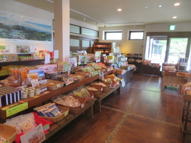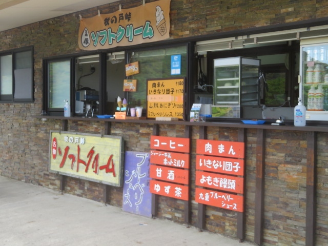 やまなみハイウェイの最高所(1333m)牧ノ戸峠にあります、広い駐車場、トイレがあり、やまなみハイウェイの休憩場所として観光客に利用されています、又、久住山・九重連山の登山口として登山者の利用が多いです、ここの名物はソフトクリームで食べる人多いです、店内にはお土産類があります、椅子・テーブルが設置されているので休憩・食事ができます、ここでおにぎり、肉まんを買って食べました。