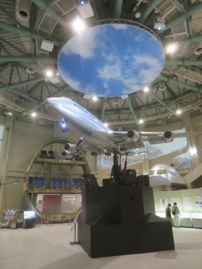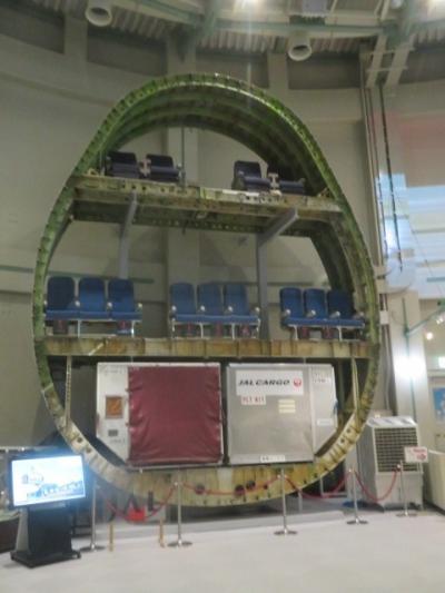 成田国際空港そば、ほぼ滑走路に隣接している飛行機のことがわかる博物館、本館に入館するとボーイング747-400の大型模型がありました、本物のジャンボジェットを輪切りにして構造が見られるようになっていました、エンジンの展示もあります、旅客機の客室、操縦席も見ることができます、普段見ることのできない部分も見られました。