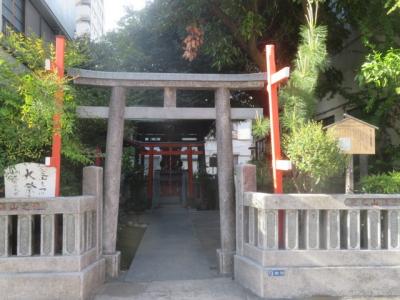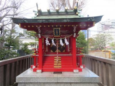 墨田区の石原にあります、両国駅から8分位の清澄通りからちょっと東側に入ったビルや住宅に囲まれた場所にある小さな稲荷神社です、江戸時代前期の人物、徳山五兵衛重政が祀らいます、徳山家にあった稲荷社と合祀されています、又、孫の秀榮が関わったことがある盗賊、日本左衛門の首洗い井戸跡があります。