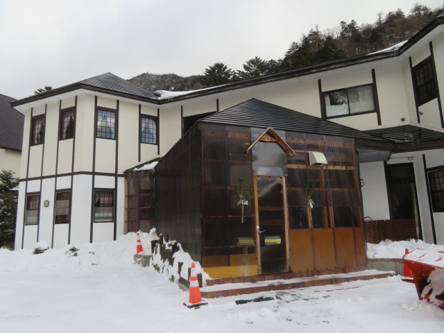 奥日光の湯元温泉にある宿です、湯元温泉では小さめの宿で建物はペンション風でちょっと古いです、客室はトイレ付きの和室でした、お茶請けのお菓子は石田屋の日光甚五郎煎餅でした、お風呂は小さめで白濁色の日光湯元温泉、源泉かけ流しの温まるいい温泉でした、露天風呂もあります、食事は夕食・朝食とも食事処で美味しく食べることができました、宿のおかみさんの感じがよかったです、ゆっくり過ごすことができました、宿の前の雪の中に猿が何匹もいました。