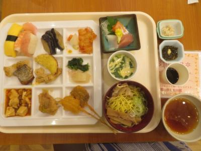 食事は伊東園ホテルズの定番、夕食・朝食ともバイキング、アルコール類も飲み放題、行った時は串揚げフェアを実施、10種類の串揚げを食べることが出来ました、釜飯もあり、食べました、一人でも安く利用が出来ました。- 旅行時期