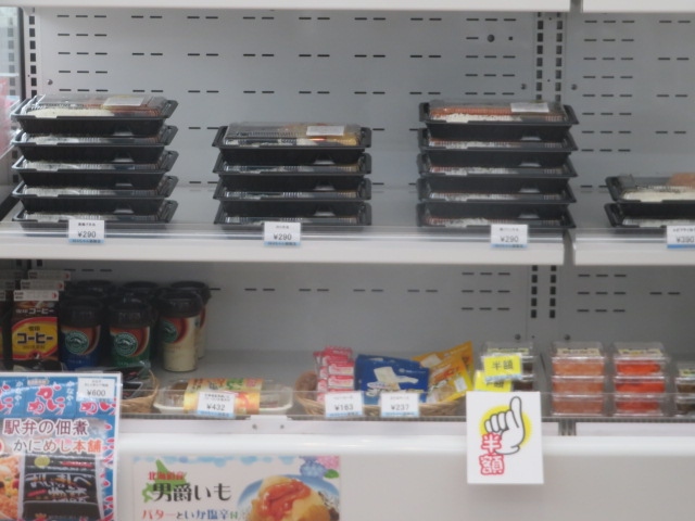 津軽海峡フェリーを利用して青森に行く時利用しました、函館フェリーターミナルの1階にある売店です、船内で食べるものを探していたらありました、弁当・おにぎり、パン、飲物とお土産類があります、290円の弁当がありびっくり、安くてそこそこの中身、これならワンコインで一食OKです、営業は6時30分から22時まで。