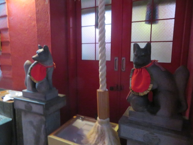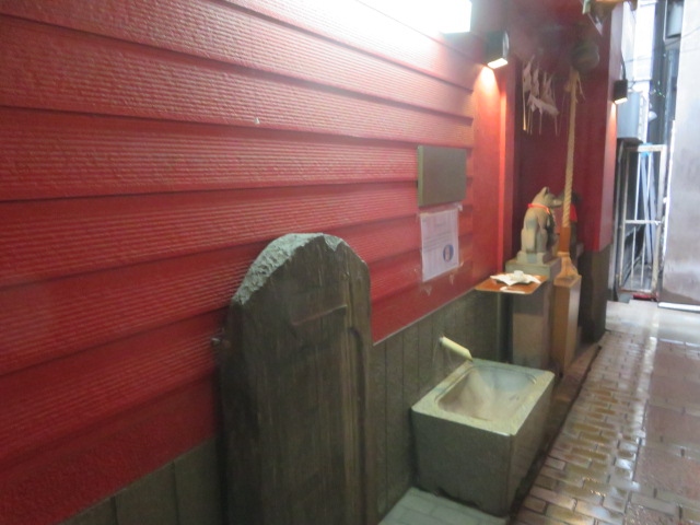 銀座7丁目の路地裏に鎮座する稲荷神社、入口に神社の石柱があり、ビルとビルの間を行くと朱塗りの壁がありそこに稲荷様があります、江戸初期から火防神・縁結神として信仰されているようで、歌舞伎役者の市村羽左衛門が信仰したことで知られているようです、最近は縁結びにご利益があるようで女性の参拝が多いようです。