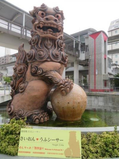 ゆいレール牧志駅前、国際通り沿いにあります、複合施設のさいおんスクエアの一角にある高さ3.4m、重さ約3トンの壺屋焼の巨大シーサーで2011年9月に出来ました、夜はライトアップされ国際通りのシンボルにもなっています、沖縄らしさがあるので撮影スポットにいいです。