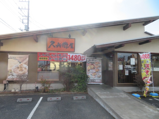 嵐山町の国道254号線・嵐山バイパスからちょっと入ったヤオコー前にあります、久兵衛屋はゼンショーグループのチェーンで何回か利用しました、うどん・そばと天ぷらがメインで大衆料金で食べることが出来ます、今回13時30分頃入店、土曜日でしたが空いていました、そばと天ぷらのセットを食べました、味は普通で、ゆっくり食べることが出来ました。