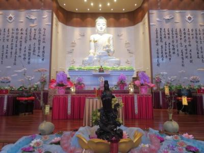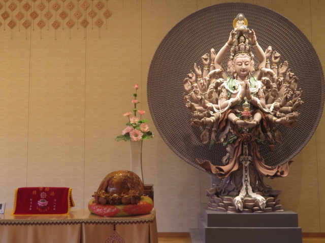 駐車場から長い階段の参道を小石像など見ながら登ると山門があり、奥に本堂があります、本堂内には慈悲宝殿や大雄宝殿があり、千手観音や玉仏・釈迦牟尼仏など見ることが出来ます、台湾人の僧侶が日本語で説明をして下さいました、御朱印を受けることもできます、カフェがあり簡単な飲食もできます、台湾名物のパイナップルケーキを食べることも出来ます、標高約700mある山門から赤城山など上州の山々を眺めることが出来ます。- 旅行時期