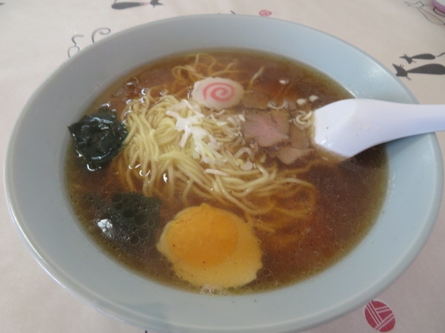 国道125号線旧三和町の諸川にある茨城県に多くあるチェーン店のラーメン店、日曜日の昼過ぎに入りましたが場所柄多くのお客さんがいました、空いていた座敷席で食べました、醤油、味噌、塩、とんこつ等ラーメン各種ありました、一番シンプルなあっさり醤油(649円)を食べました、なると、ほうれん草が入っていて昔ながらの味が楽しめました、餃子は5個で319円です。