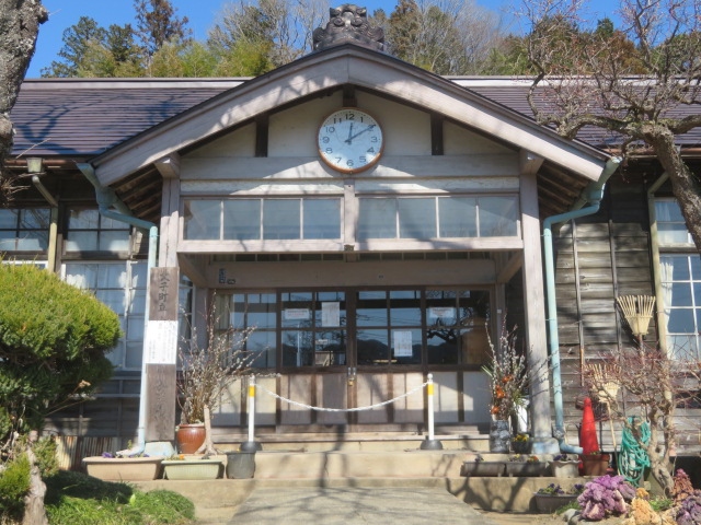 大子町上岡の国道461号線沿いにある木造平屋建ての校舎です、旧上岡小学校は明治12年(1879年)4月20日創立で平成13年(2001年)3月31日をもって閉校、ドラマや映画のロケ地として多く利用されています、NHKの連続テレビ小説・エールでも利用されています、建物は平成26年(2014年)には国の有形文化財に指定されています、校庭には二宮尊徳像があります、玄関前には丸型郵便ポストもあります、建物内の見学、行った時はできませんでした。