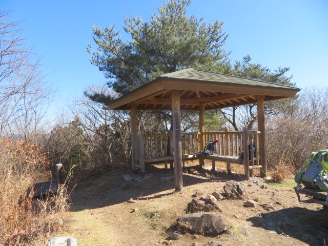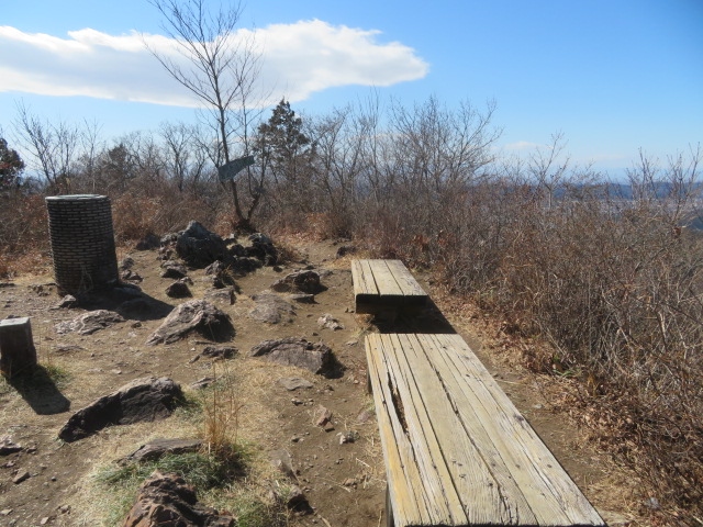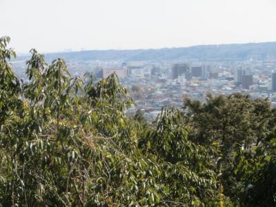中央公園から能仁寺境内を歩いて登山道に入りました、歩き易い道です、頂上の手前にトイレがある広場があります、そこから更に登ると頂上・展望台(標高195m)に着きます。