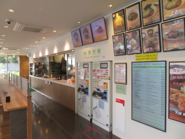 東北道を利用した時、食事をしました、栃木インターと鹿沼インターの間にある小さめのパーキングエリアです、軽食・フードコートで天ぷらそばを食べました、券売機を利用しての注文、周辺ではにらが特産なのでニラ中華そばやニラ炒め定食が売れているようでした、小さめの売店にはレモン牛乳など栃木産品が少しありました、空いていて入りやすいので入りました。
